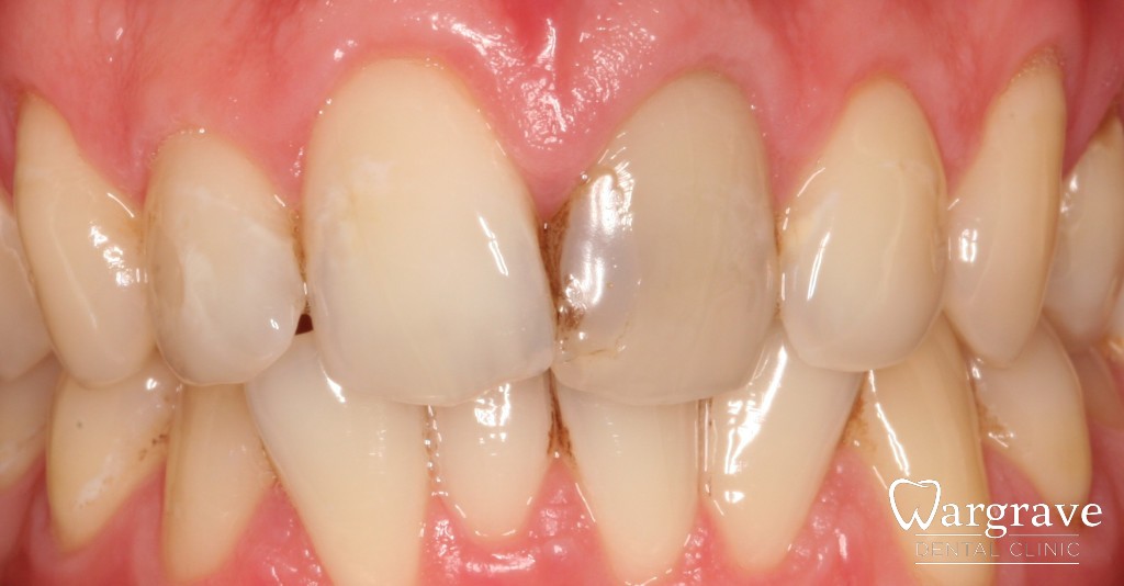 Case 1 – Teeth that have previously been root treated and as a consequence suffered from discolouration can be whitened from within. As a result the tooth can be returned to a whiter colour and avoid more invasive crowns or venners.